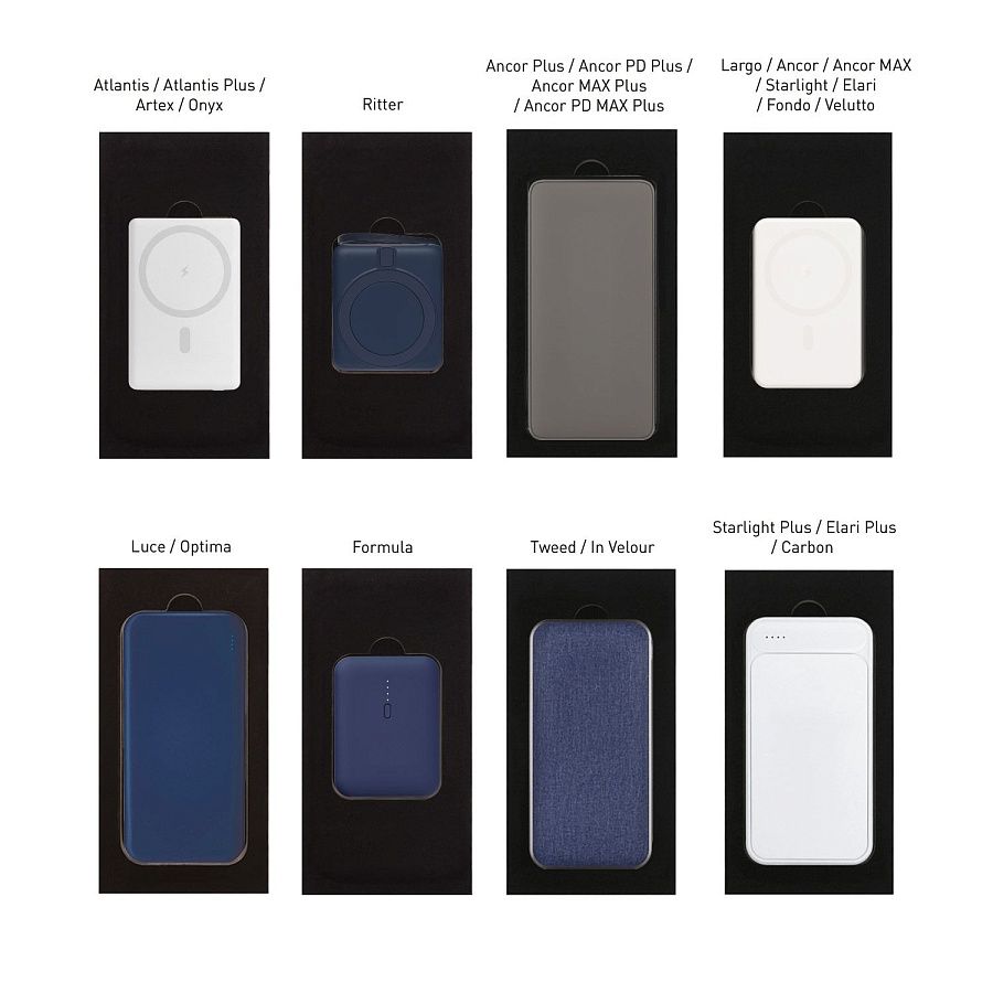 Доступны съемные ложементы для следующих моделей внешних аккумуляторов. (*Обращаем ваше внимание, что доп. ложементы под внешние аккумуляторы являются универсальными – они не фиксируют зарядное устройство, а являются ячейкой):