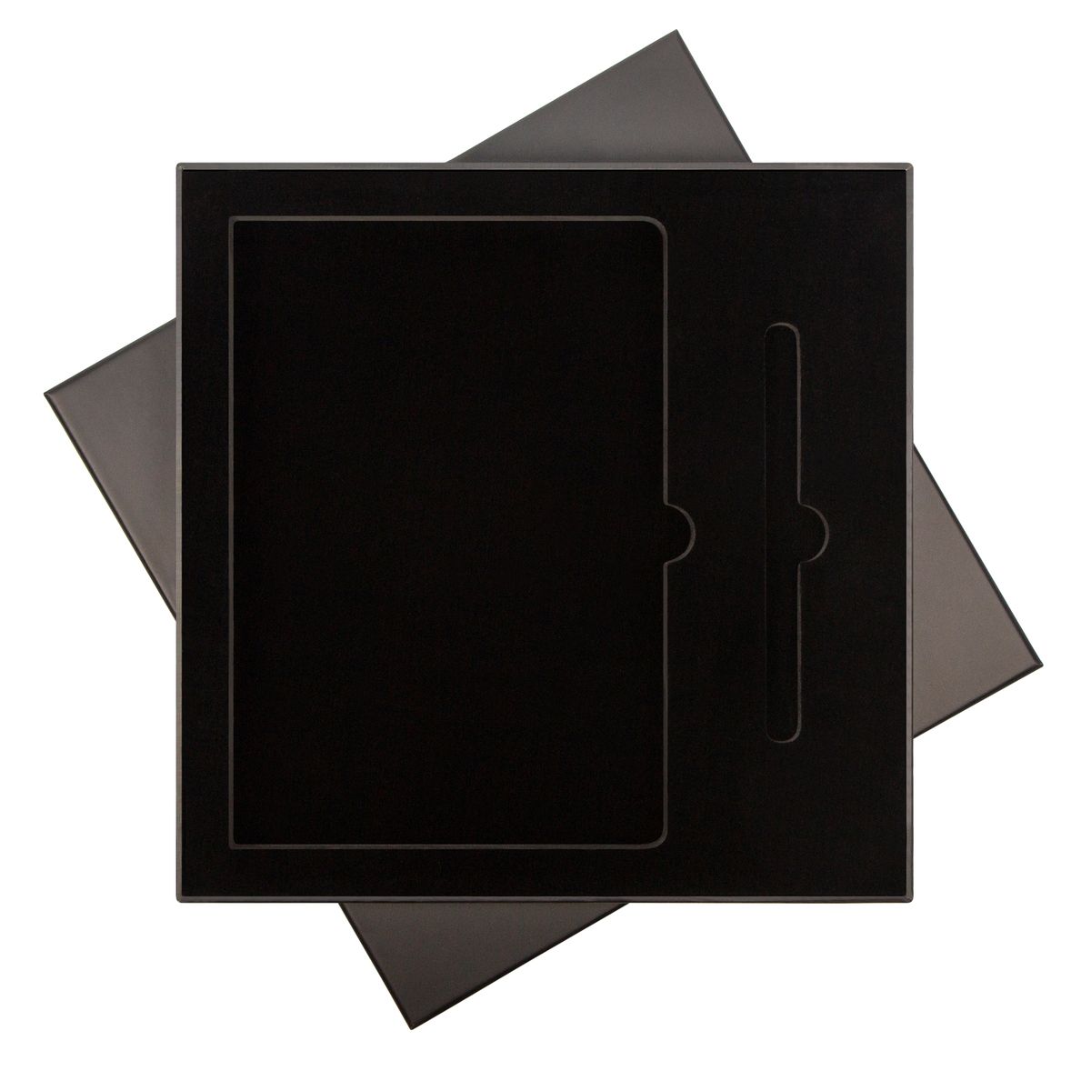 Хорошо продуманный дизайн подарочной коробки оформит и завершит внешний вид любого подарка, контрастируя с яркими эллементами. Тёмно-серый ложемент и обрамляющая упаковка глубокого чёрного цвета станут отличным дополнением большинством представленных аксессуаров.