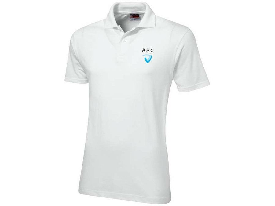 Рубашка-поло First. Воротник 1х1. Обшивка внутри воротника. Мужская и детская модели с 2 пуговицами, женская - с 4 пуговицами. Пуговицы с гравировкой в тон. Пике, 100% хлопок. 160 г/м2.