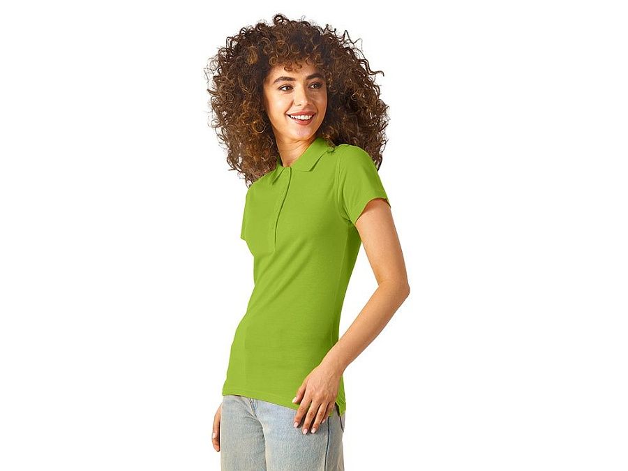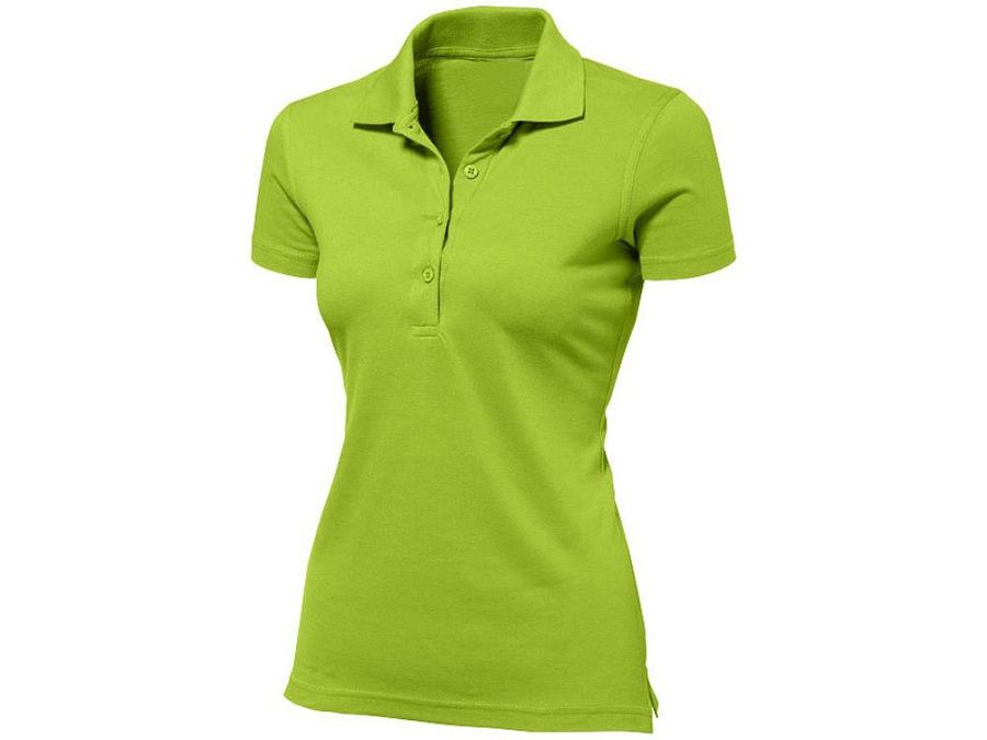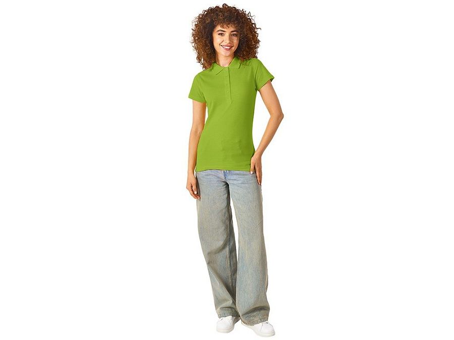 Женская рубашка-поло First. Воротник 1х1. Обшивка внутри воротника. Мужская и детская модели с 2 пуговицами, женская - с 4 пуговицами. Пуговицы с гравировкой в тон. Пике, 100% хлопок. 160 г/м2.