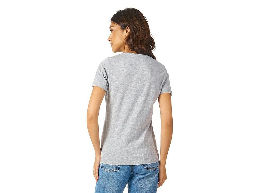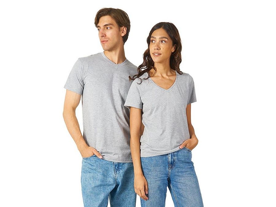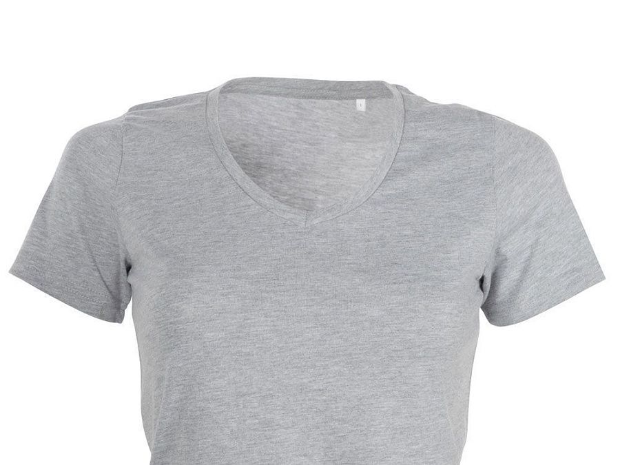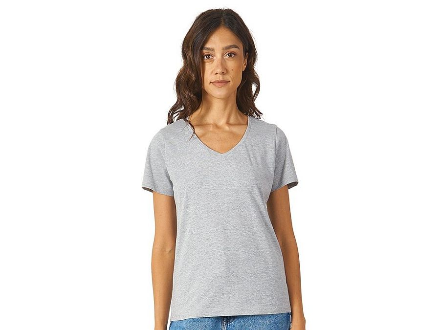Женская футболка из натурального хлопка с элегантным V-образным вырезом. Материал отлично подходит для нанесения рекламной информации. Натуральная ткань не вызывает раздражения кожи.