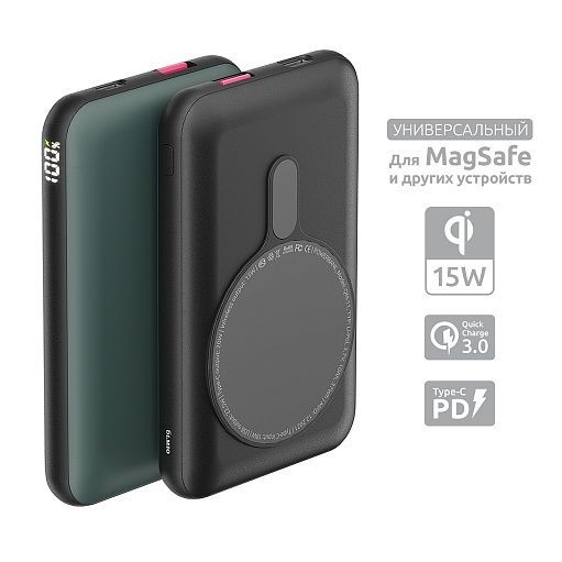 PowerBank поддерживает технологию MagSafe и примагничивается к девайсам либо к чехлам, обладающими этой технологией. Благодаря разъему Type-C, Вы сможете обойтись одним кабелем в повседневной жизни. Если же необходимо зарядить два устройства, то к Вашим услугам еще один разъем - стандартный USB 2.0.