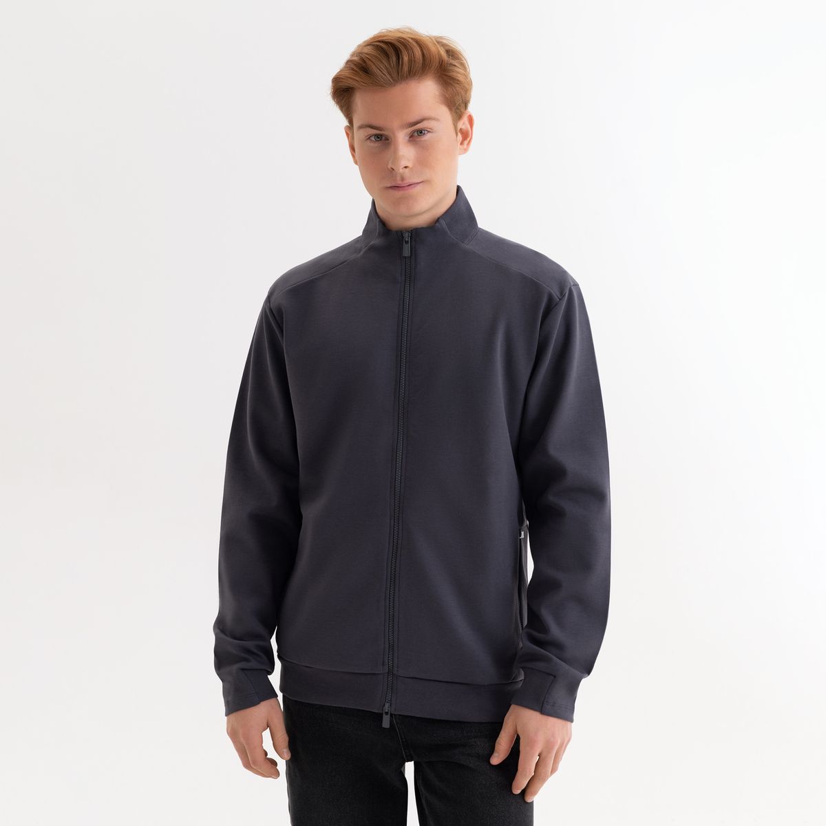 Мужская толстовка на реверсивной молнии прямого силуэта с карманами на молнии. Эта модная и универсальная модель станет идеальной базой для повседневного гардероба.