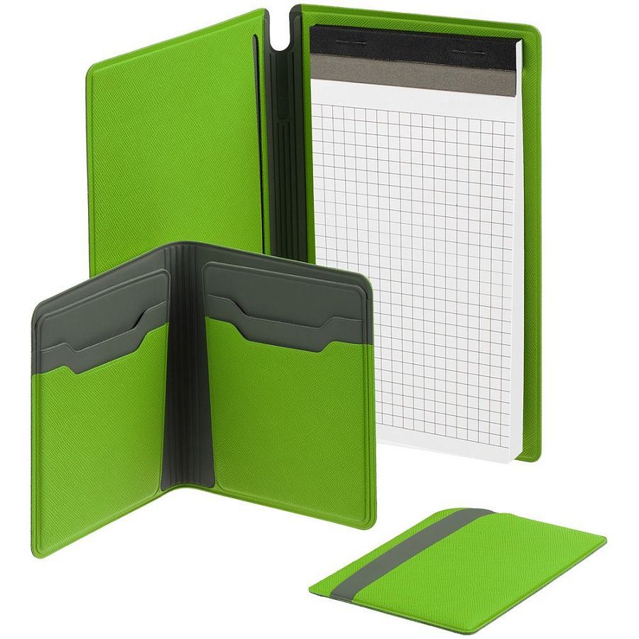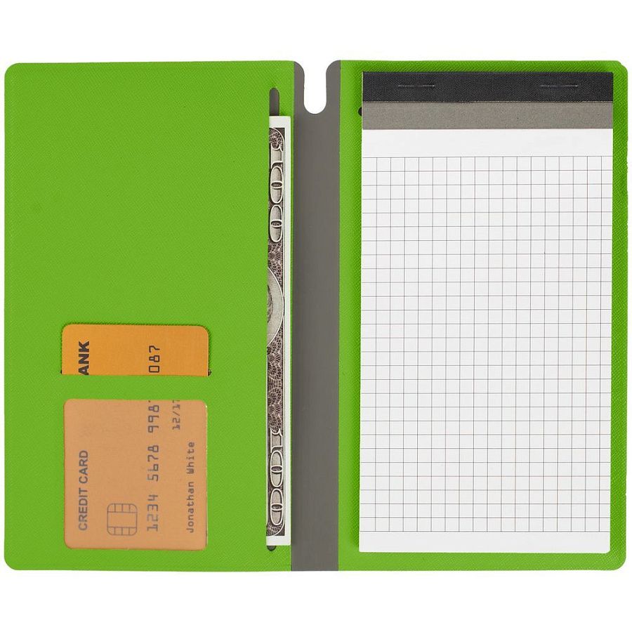 Съемная обложка с карманом для документов, отделением для пластиковой карты и местом для ручки.