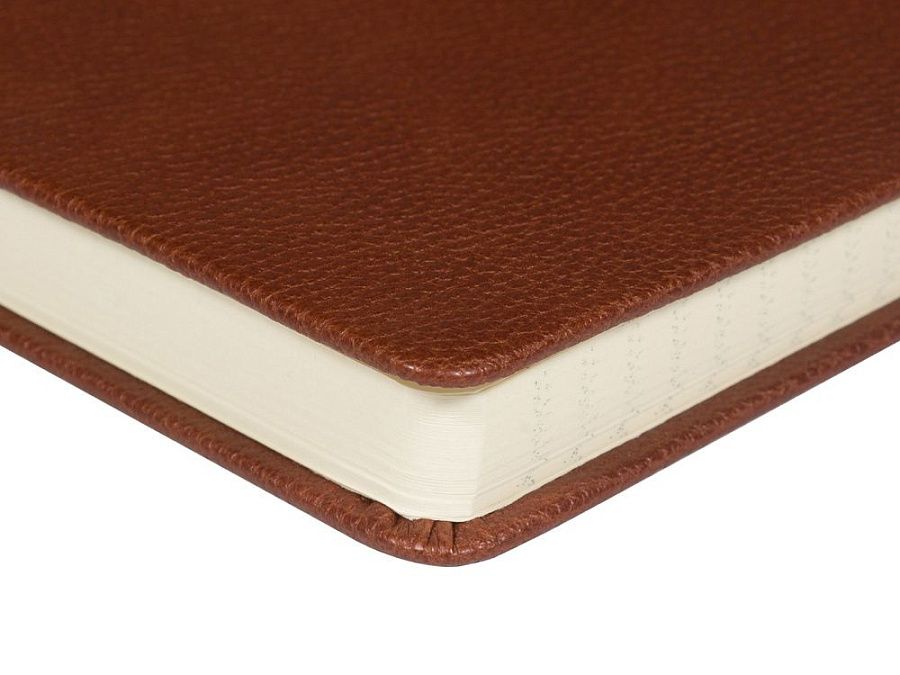 Твердая обложка из высококачественной экокожи максимально повторяет фактуру натуральной кожи. Скругленные углы блока и обложки позволяют уберечь листы от замятий и придают ежедневнику утонченности и благородства. Для удобства навигации предусмотрена закладка-ляссе в цвет обложки.