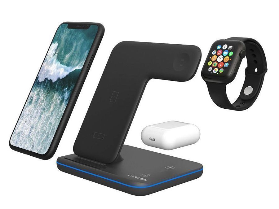 Эта беспроводная зарядная станция с функцией быстрой зарядки совместима с устройствами, оснащенными QI. Конструкция позволяет одновременно заряжать Apple Watch,Airpods, iPhone или смартфон на Android с поддержкой беспроводной зарядки QI. Безопасность и скорость зарядки обеспечивается интеллектуальным чипсетом Novoton.