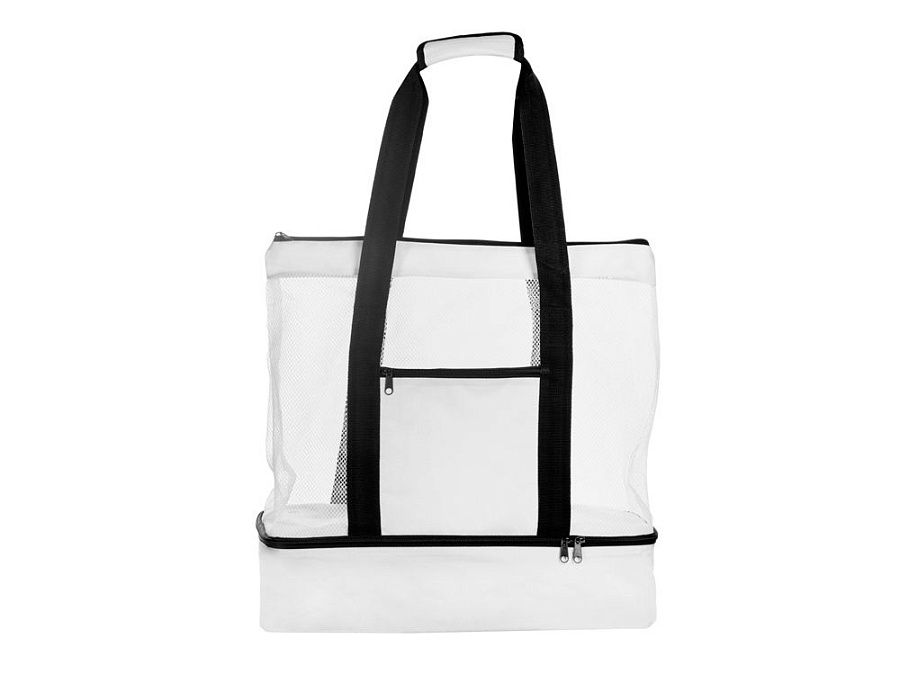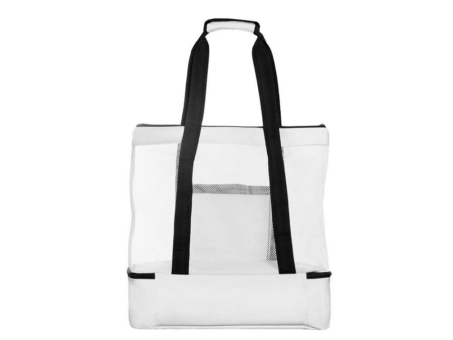 Вместительная пляжная сумка с отделением -холодильником внизу. Удобно брать холодные напитки на пляж. Сетчатая ткань способствует просыханию пляжных вещей. Комфортные длинные ручки фиксируются вместе застежкой липучкой. Все отделения и наружный карман для мелочей застегиваются на молнию. Благодаря большой вместительности сумку можно использовать для шоппинга.