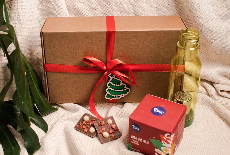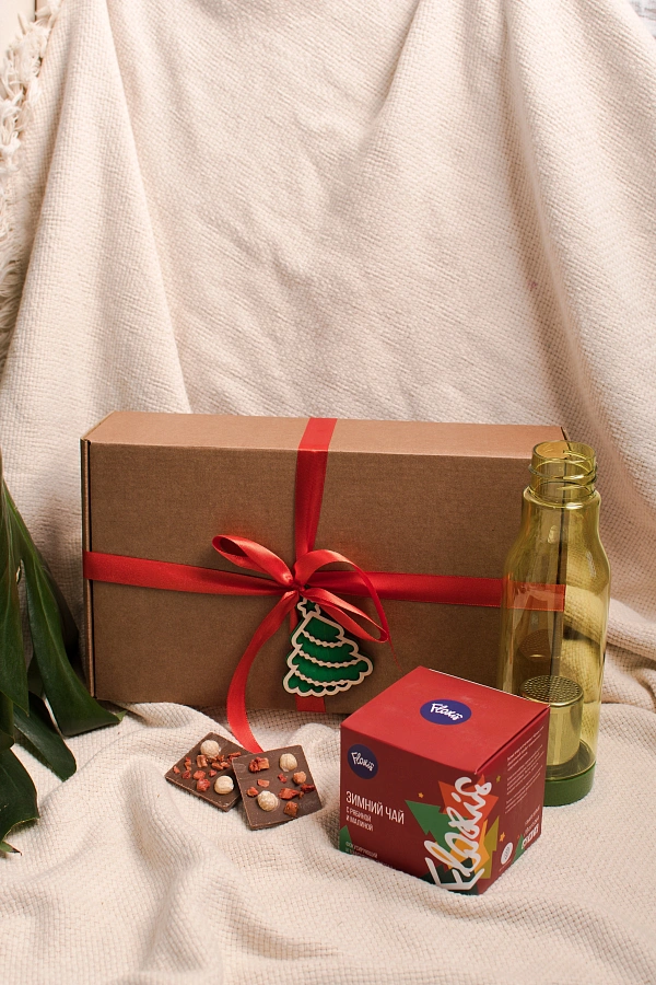 —Набор «Зимняя прогулка»: бутылка с заварником, чай, шоколад, елочная игрушка, артикул 14776