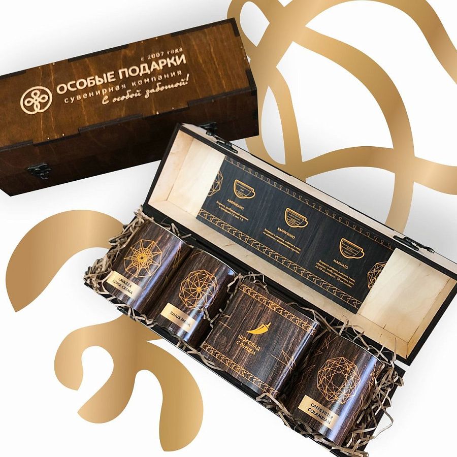 Нанесение (включено в стоимость): гравировка на крышке деревянной шкатулки, открытка с вашим логотипом