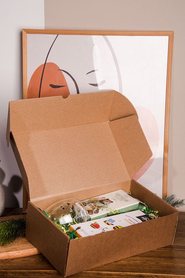 Тёплый набор с красивой лентой и крафтовой коробкой. Такой оценит любой любитель мёда.