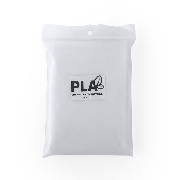 Прозрачный дождевик из компостируемого материала. Один размер для взрослых с капюшоном и отверстиями для рук. Поставляется в мешочке из PLA 10 x 13,5 см.