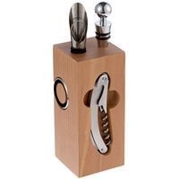 подставка - дерево, бук; штопор - нержавеющая сталь; каплеуловитель - нержавеющая сталь; аэратор - нержавеющая сталь, силикон; пробка - нержавеющая сталь, силикон; нож для фольги - пластик, нержавеющая сталь