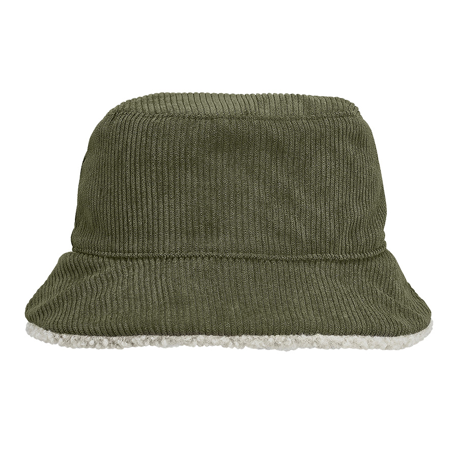 Стильная двусторонняя панама. Внешняя сторона выполнена из вельвета, внутренняя - из шерпы бежевого цвета.