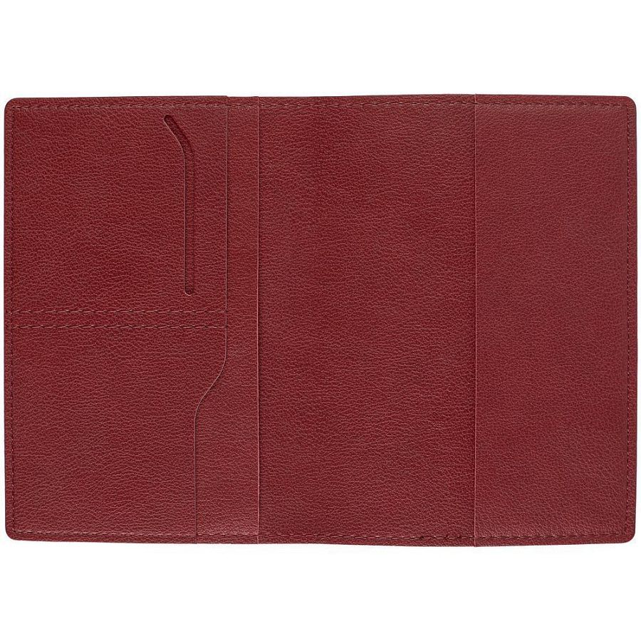 Имеет основное отделение для паспорта и 2 кармана для визиток или кредитных карт.