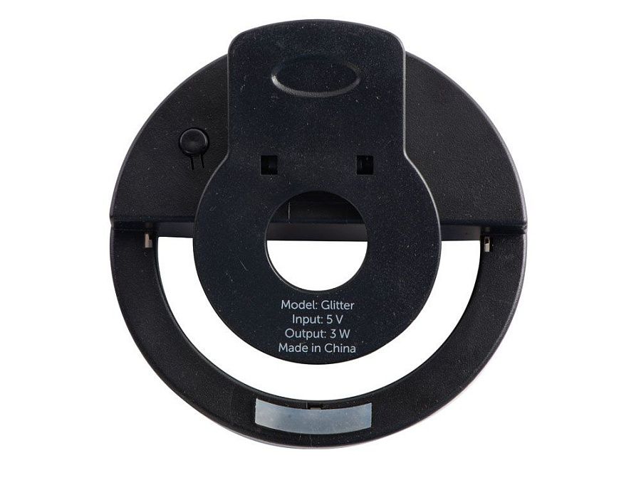 Световое кольцо "Glitter" делает ваши селфи- фото и видео более качественными за счет дополнительного освещения. Подсветка представлена нейтральным белым цветом от 48 светодиодов с 3 режимами яркости. Время непрерывного свечения - до 2 часов. Можно быстро зарядить от любого пауэрбэнка по micro USB. Благодаря удобной конструкции селфи-кольцо устанавливается и снимается за секунду. На корпусе имеются силиконовые защитные полоски, чтобы исключить даже малейшие повреждения экрану смартфона.