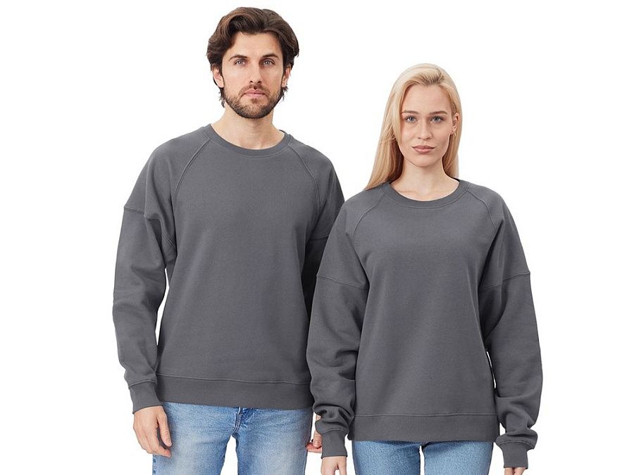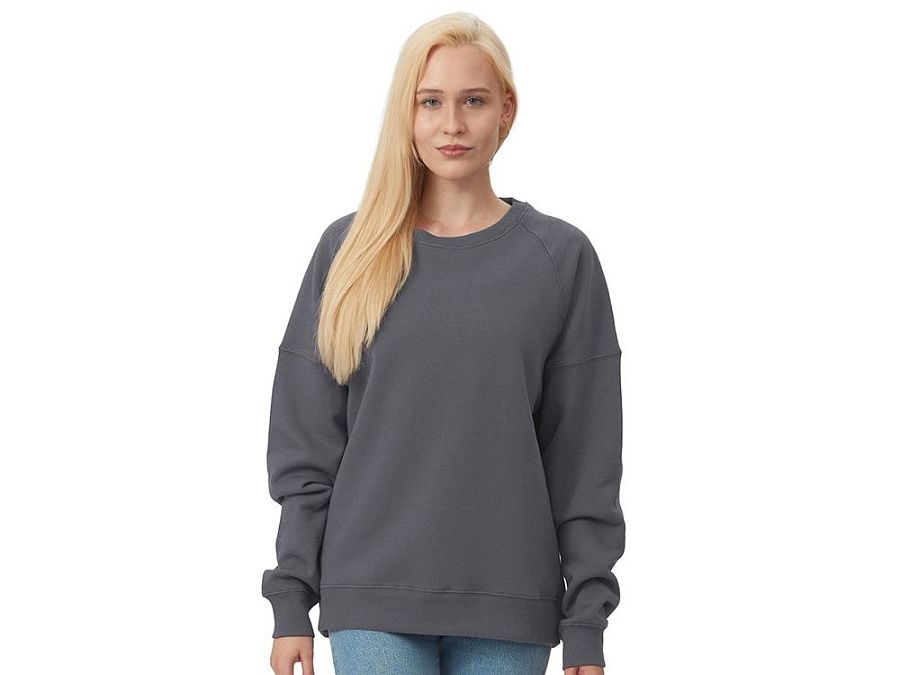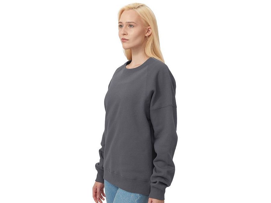 Главная особенность этого свитшота оверсайз — необычный рукав из двух частей: верхней — реглан до середины предплечья — и нижней, которая заканчивается резинкой. Благодаря такому необычному крою свитшот сидит комфортно по фигуре.