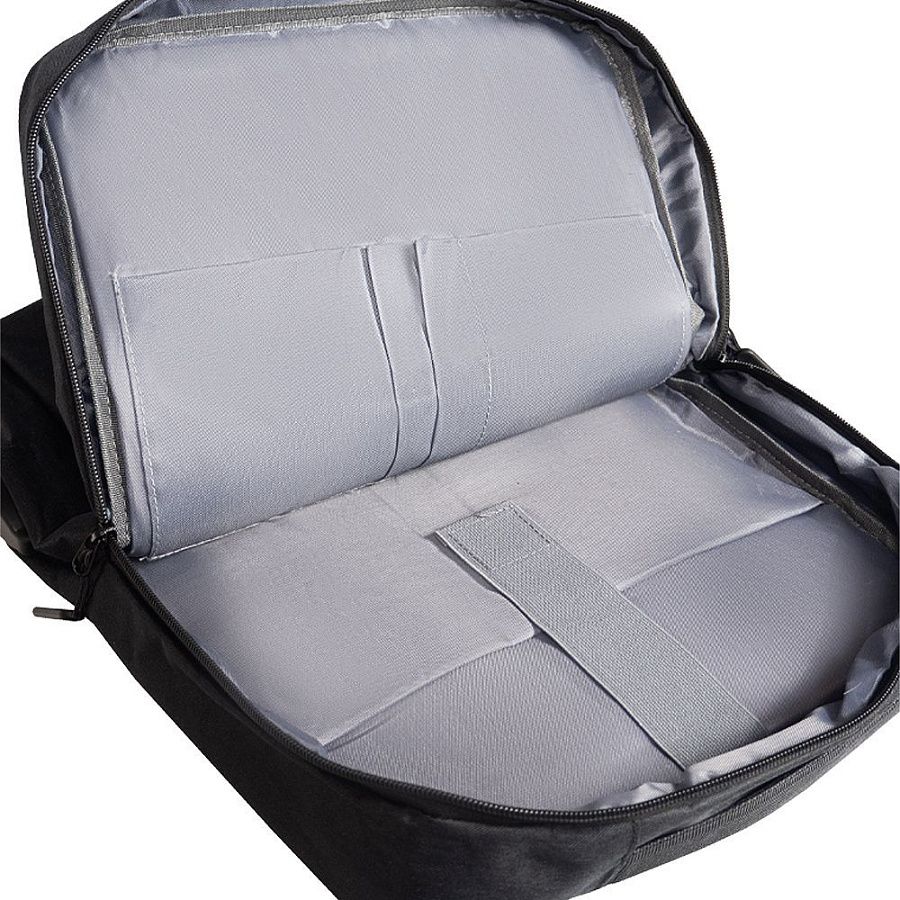 Ближайший к спине отсек предназначен для ноутбука с диагональю 15 дюймов. В переднем отделении отлично разместятся документы. Боковые карманы удобны для воды, ключей и прочего. Эргономичные плечевые лямки регулируются по длине.
