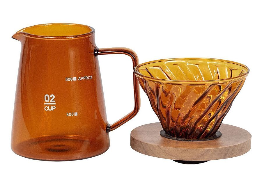 Элегантный кофейный набор с прозрачной воронкой для приготовления кофе методом пуровер от японского короля стекла Hario. Чтобы приготовить вкусный кофе, положите фильтр с молотым кофе в воронку и поставьте ее на кофейник. Медленно вливайте горячую воду в воронку и ждите, когда кофе протечет в графин. Через несколько минут ваш кофе готов!