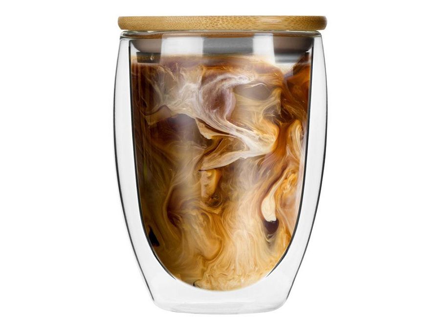 Стакан Valday от бренда Eat&Bite Select — не только красивый, но и продуманный: боросиликатное жаропрочное стекло, безопасное для человека, прочное и легкое, выдерживает до 150 градусов по Цельсию, а бамбуковая крышка с силиконовым уплотнителем дополнительно позволяет снизить скорость остывания напитка. Стальная вставка на крышке препятствует образованию трещин.