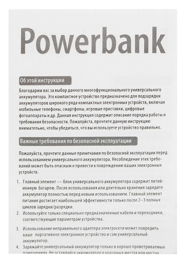 - Перед началом использования аккумулятор необходимо полностью зарядить от сетевого зарядного устройства