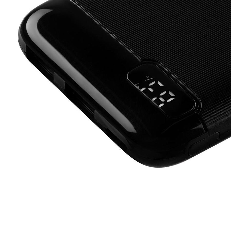 Аккумулятор со входными разъёмами Type-C и Micro USB, а также удобным индикатором заряда в процентах.