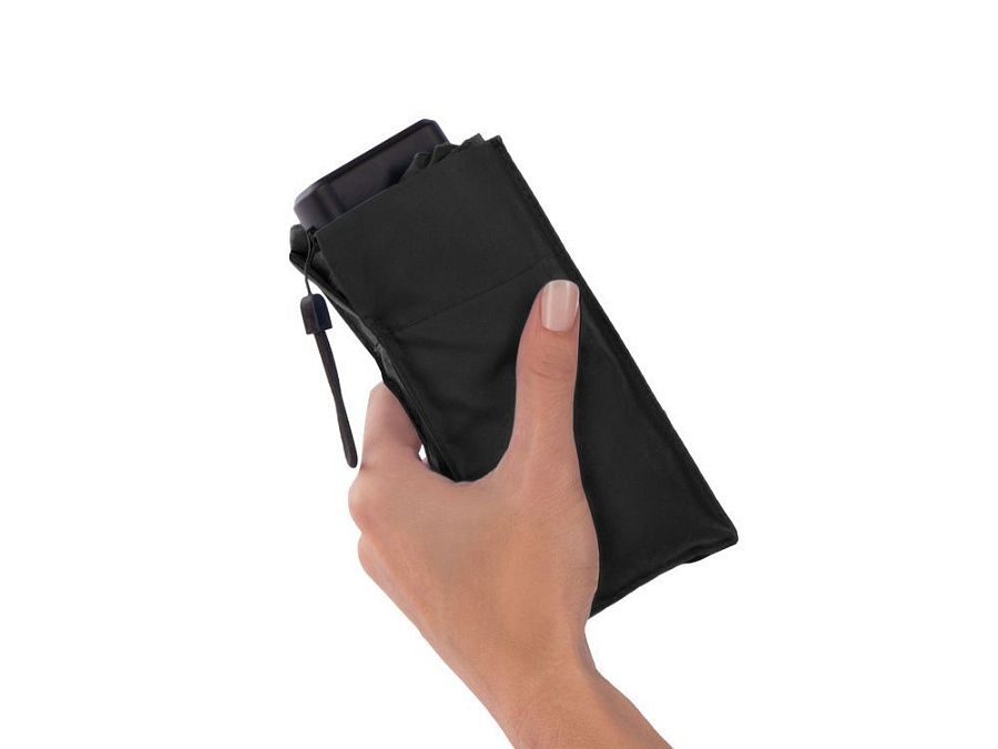 Легкий компактный зонт must have в каждой сумке! Длина в сложенном виде всего 15 см. На ручке из мягкого пластика есть эластичный шнурок для подвешивания при хранении.