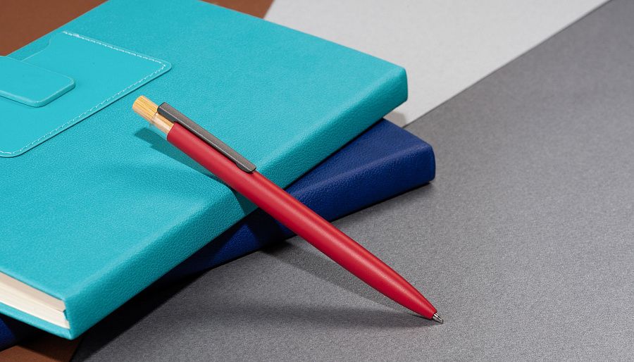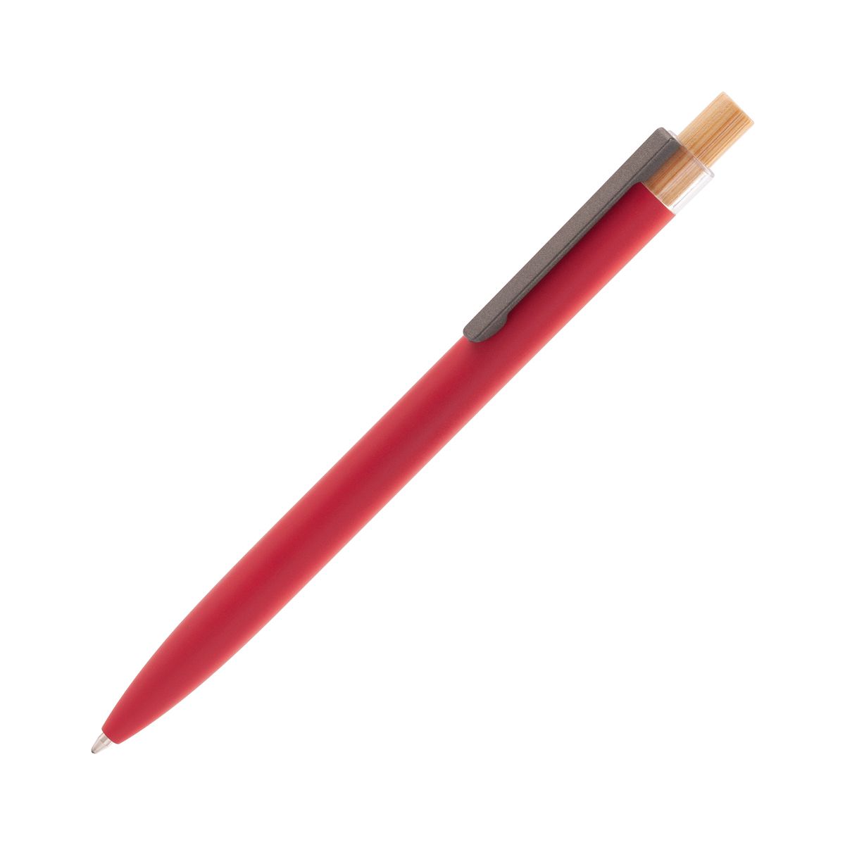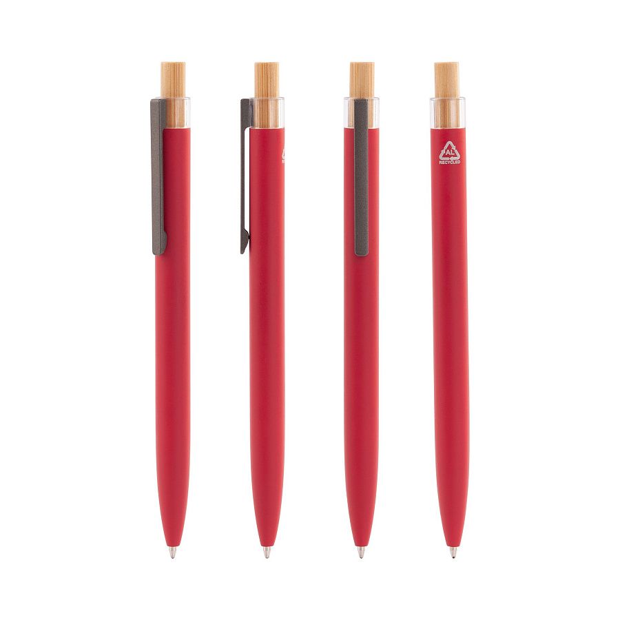 Трендовая эко-ручка, изготовленная из переработанных алюминия и пластика, с кнопкой из бамбука.