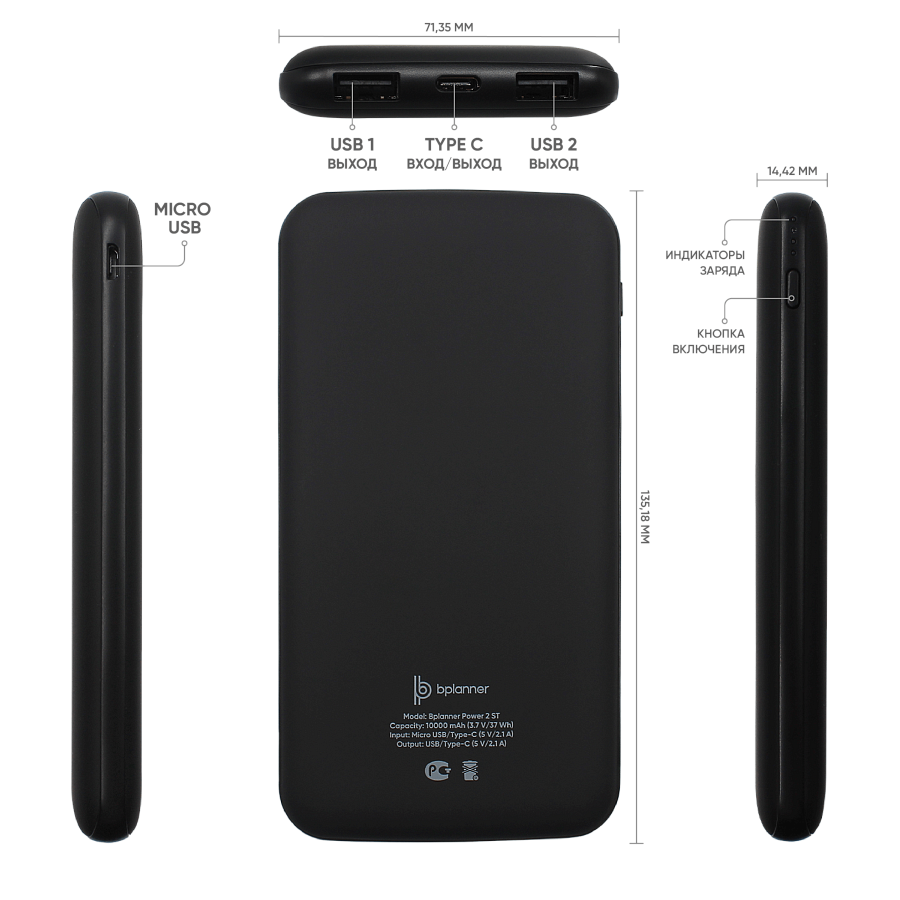 Внешний аккумулятор gPro QI, с беспроводной зарядкой 10000 mAh, черный, артикул 2011