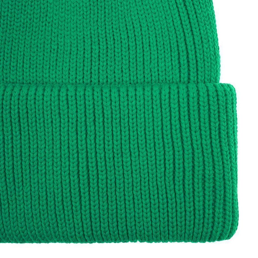 Удлиненная шапка объемной фактурной вязки с отворотом.
