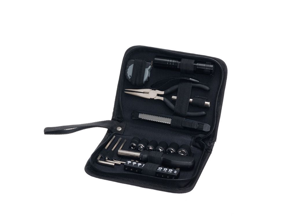 Набор инструментов STINGER W0109 на 25 предметов придётся по вкусу всем тем, кто привык всё делать своими руками. С таким комплектом можно без труда произвести практически любой мелкий бытовой ремонт. Все предметы надёжно закреплены в прочном нейлоновом чехле. Этот компактный набор можно хранить в тумбочке, на полке, в шкафу или бардачке машины. Стальные рабочие части инструментов отличаются повышенной прочностью, рукоятки выполнены из износостойкого карбона. Для удобства чехол дополнен матерчатой ручкой для переноски.