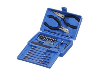 Набор инструментов на 25 предметов STINGER W0414 поставляется в необычном трёхстворчатом пластиковом кейсе насыщенного синего цвета. Входящие в комплект инструменты позволят без труда решать самые разные задачи по ремонту в доме или починке техники. Все инструменты изготовлены из высококачественной закаленной углеродистой стали с хромированным покрытием, рукоятки выполнены из углепластика чёрного цвета. Этот материал не скользит и гарантирует удобное положение в руке.