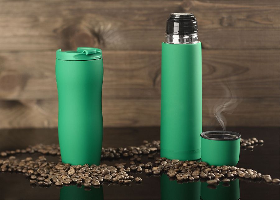 - Подарочные наборы с термокружкой зеленого цвета