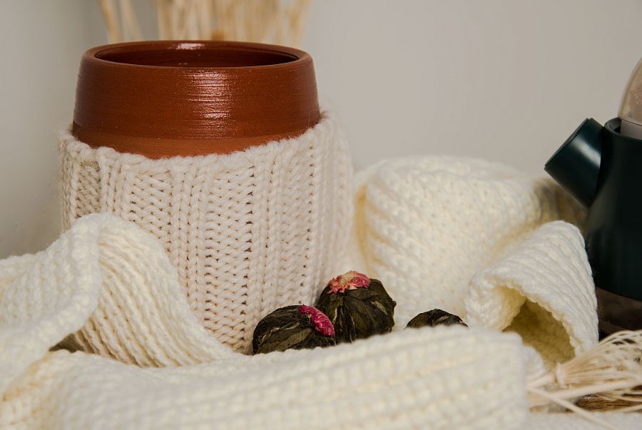 керамическая кружка с вязаной манжетой, 450 мл