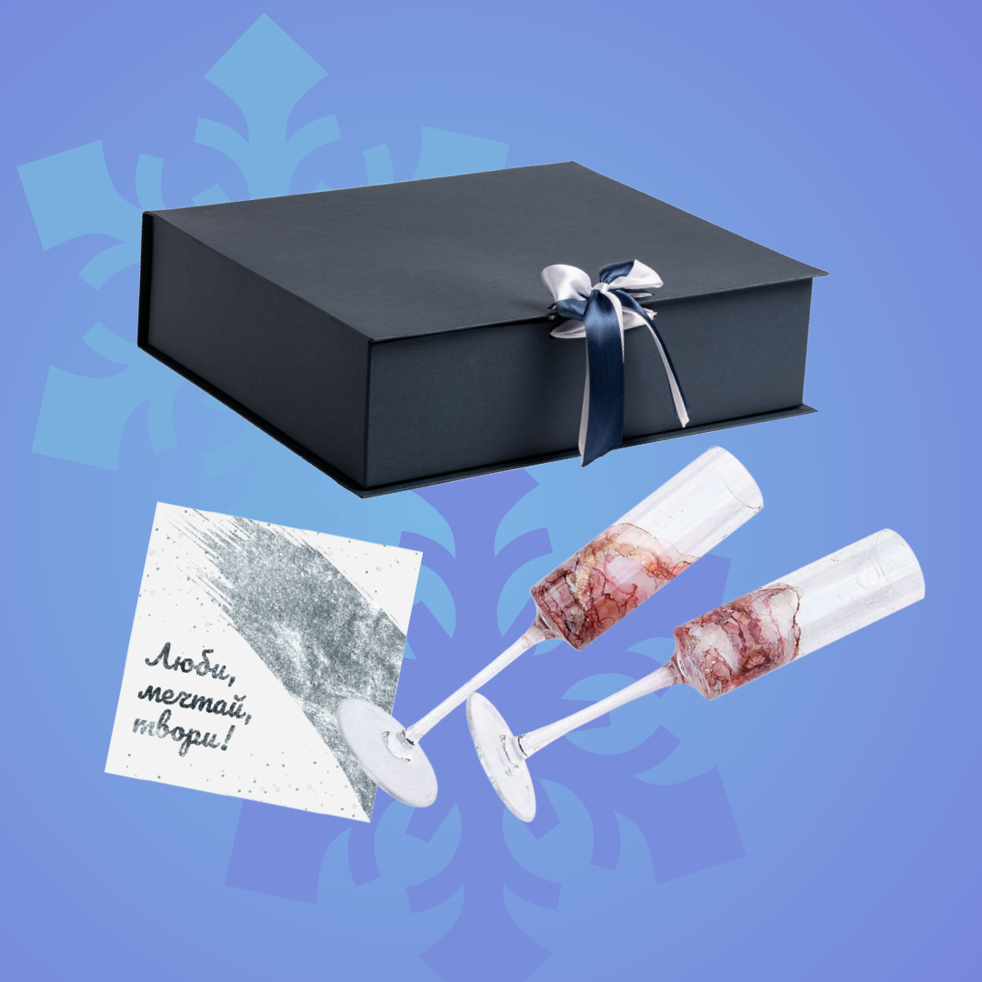Подарочный набор «Акварель» — это идеальный подарок для ценителей прекрасного. В набор входят два бокала ручной работы, которые станут настоящим украшением любого стола, и открытка с тёплыми пожеланиями. Бокалы расписаны вручную российскими мастерами. Всё в коробке с ложементом и праздничной открыткой.