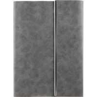 Ежедневник с гибкой обложкой, клапаном на магните и металлической отделкой клапана. Выполнен из материала Petrus, красный РР, дополнен серым ляссе.