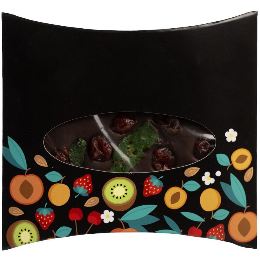 Шоколад ручной работы, изготовленный по классической бельгийской технологии, с кусочками сушеного киви и вишни.Состав: какао тертое, сахар, масло какао, эмульгатор (соевый лецитин), ванилин, вишня сушеная, киви сушеное. Темный шоколад 55%.