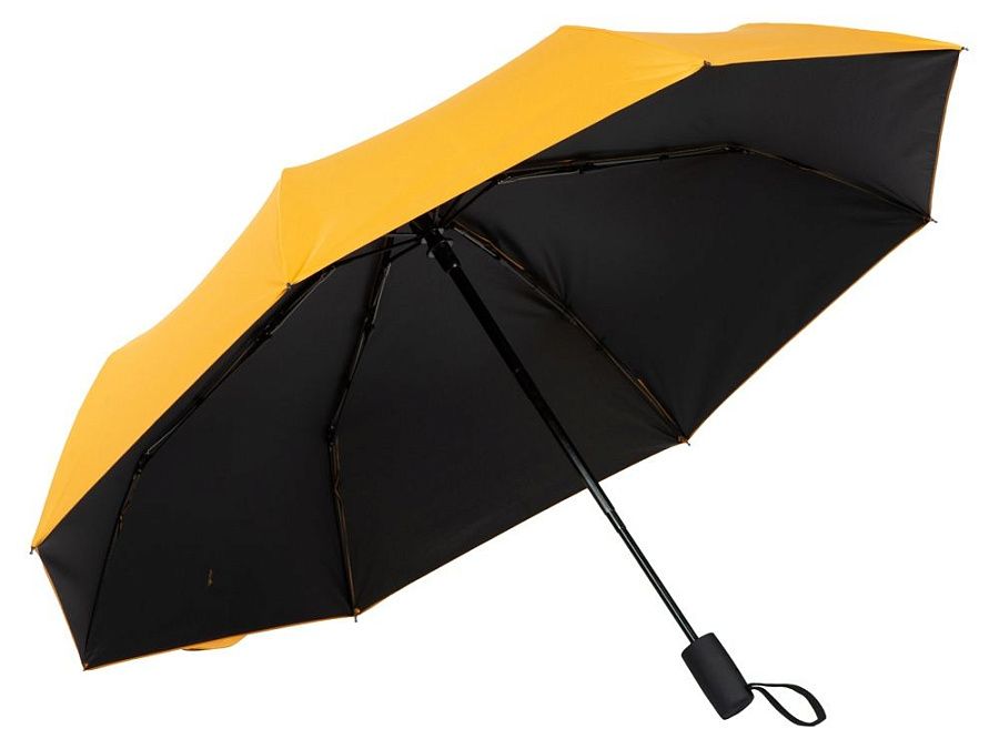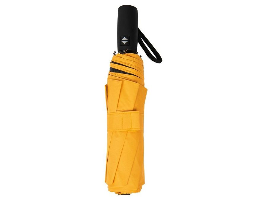 Особенностью этого зонта-автомата является двухцветный купол повышенной плотности и прочности. Под таким зонтом не страшен никакой дождь, даже с порывами ветра. На ремешок-застежку на липучке шириной 3 см можно нанести логотип. Эластичный шнурок на ручке служит для дополнительного удобства при хранении.