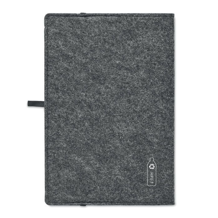 Блокнот A5 с фетровой обложкой из RPET. 160 линованных страниц из переработанной бумаги (80 листов / 70 гр/м²). Эластичная петля для ручки.