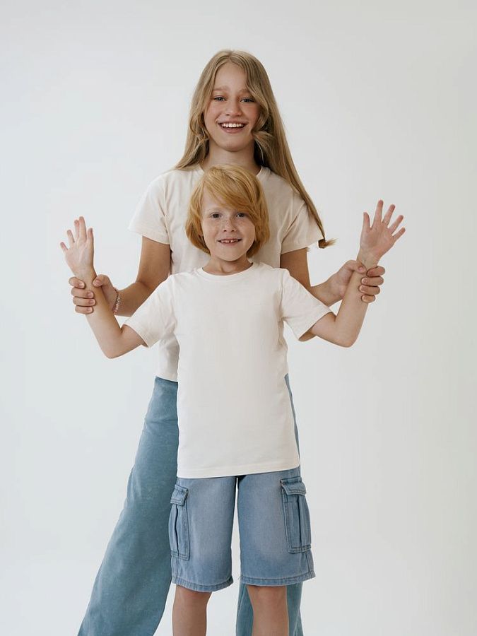 Детская футболка прямого силуэта с боковыми швами.