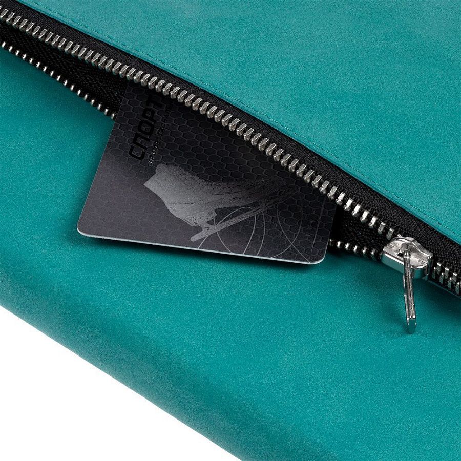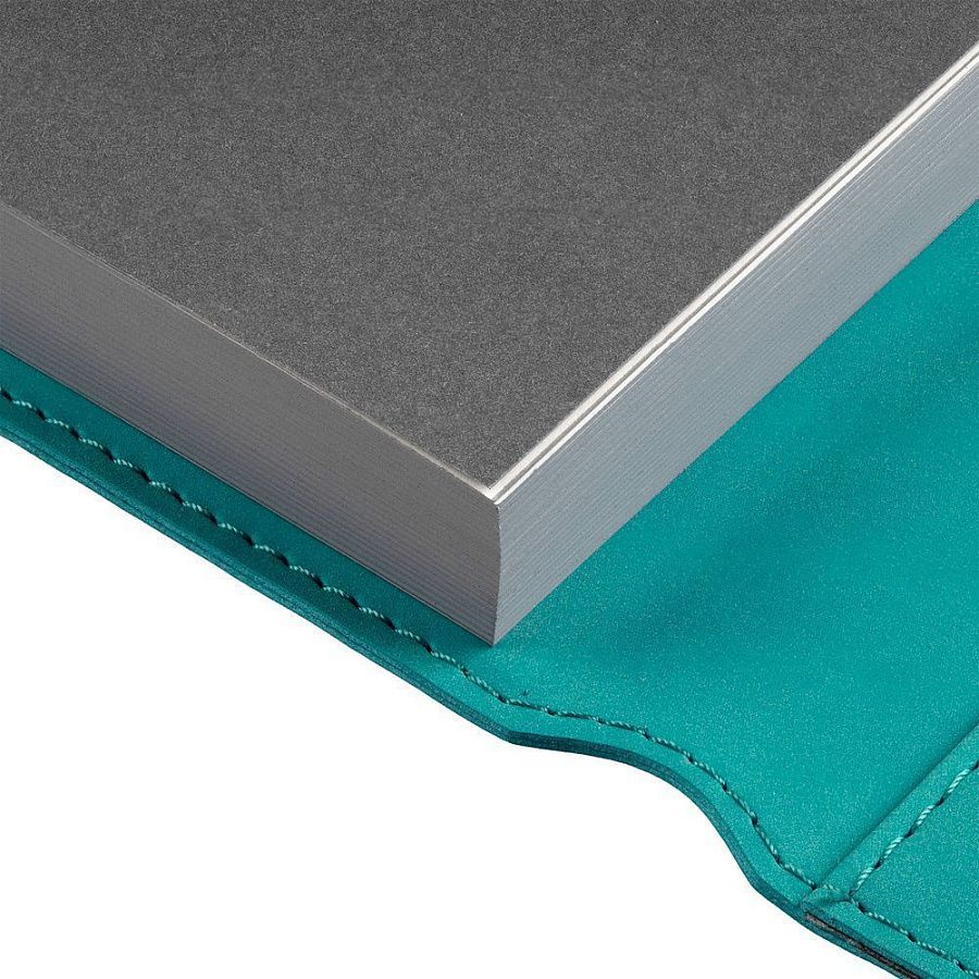 Ежедневник в гибкой суперобложке c карманом на молнии, выполнен из материала Nubuck, цвет морской волны II. Дополнен капталом и металлической шильдой на ляссе серого цвета.
