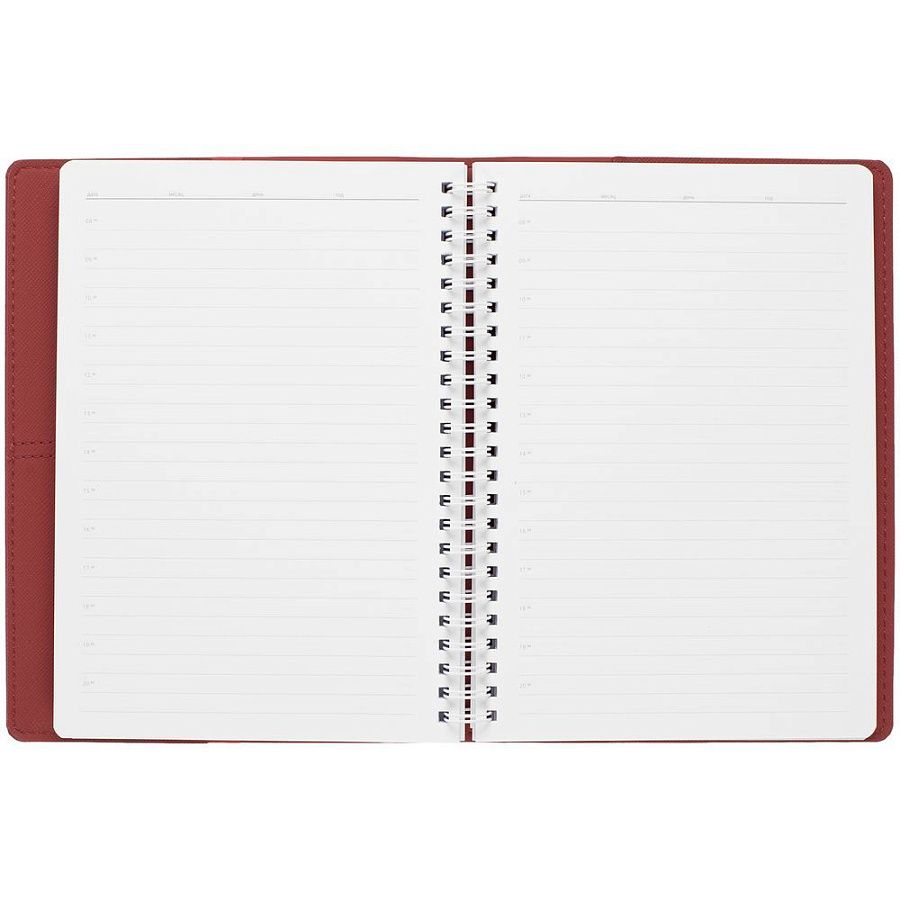 Ежедневник с блоком на пружине в твердой обложке, выполнен из материалов Nice Touch, Soft Touch и Soft Touch Ultra красный.