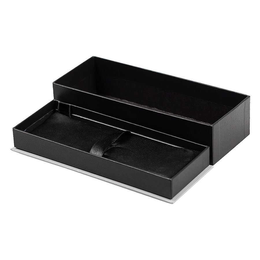 Футляр для одной или двух ручек станет практичным дополнением бизнес-подарка. Основа изготовлена из плотного высококачественного картона, вкладыш футляра имеет гладкую, приятную на ощупь текстуру. Пишущий инструмент закрепляется с помощью резинки.