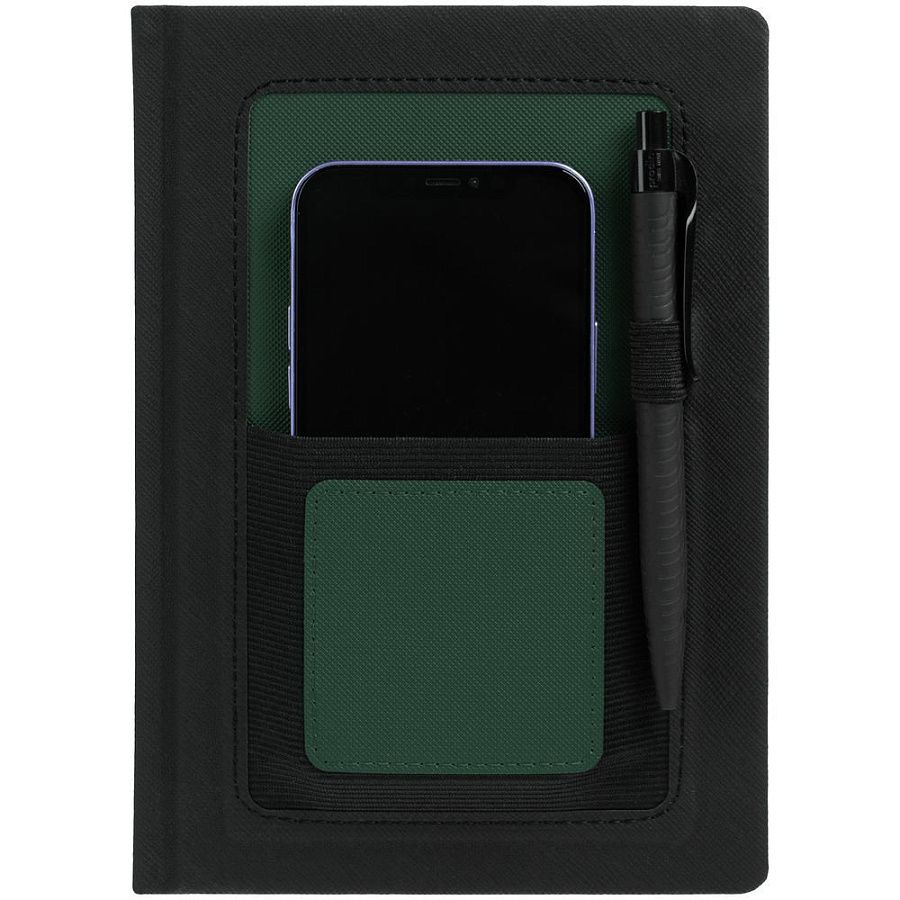 Ежедневник с карманом шириной 10 см из резинки, в котором удобно разместить мобильный телефон или визитки для переговоров.