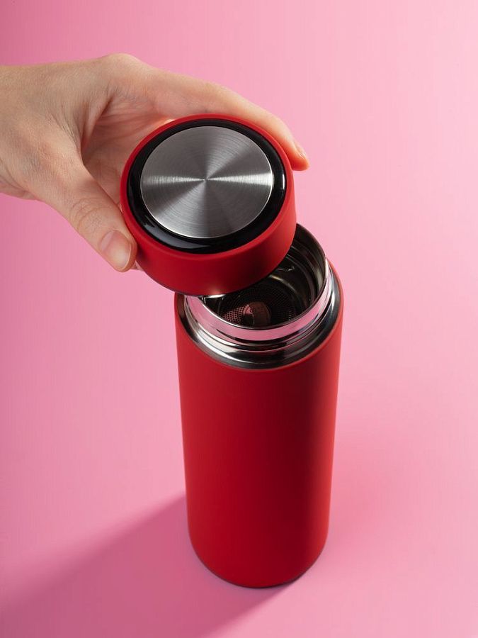 Компактный термос Percola пригодится и в городе, и на природе. Съемное ситечко поможет заварить чистую чашку чая или кофе, а цилиндрический корпус даст широкие возможности для маркетинговых сообщений.