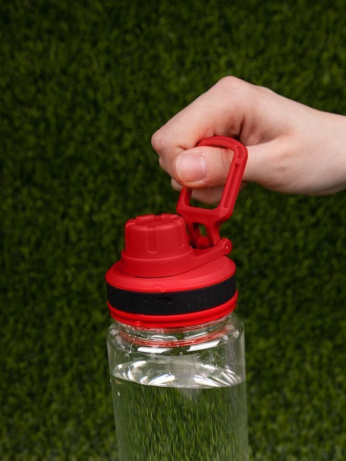 Большая бутылка с откручивающейся крышкой отверстия для питья и ручкой-петлей для переноски. Наполнить всего пару раз — и дневная норма воды будет выпита.