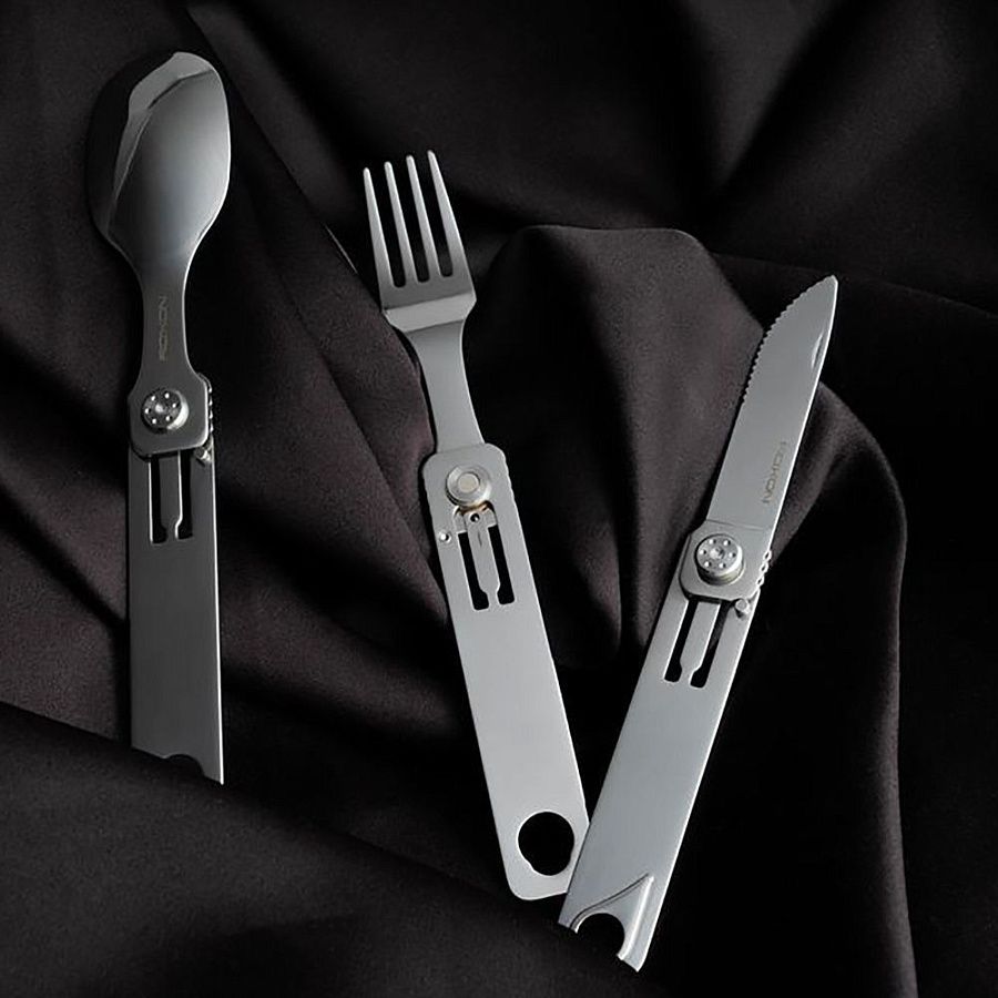 Набор столовых приборов C1 сделает туристические походы, пикники и другие занятия на свежем воздухе комфортнее. Ложка, вилка и нож легко складываются в компактную конструкцию для перевозки и раскладываются на три отдельных прибора — для использования по назначению.