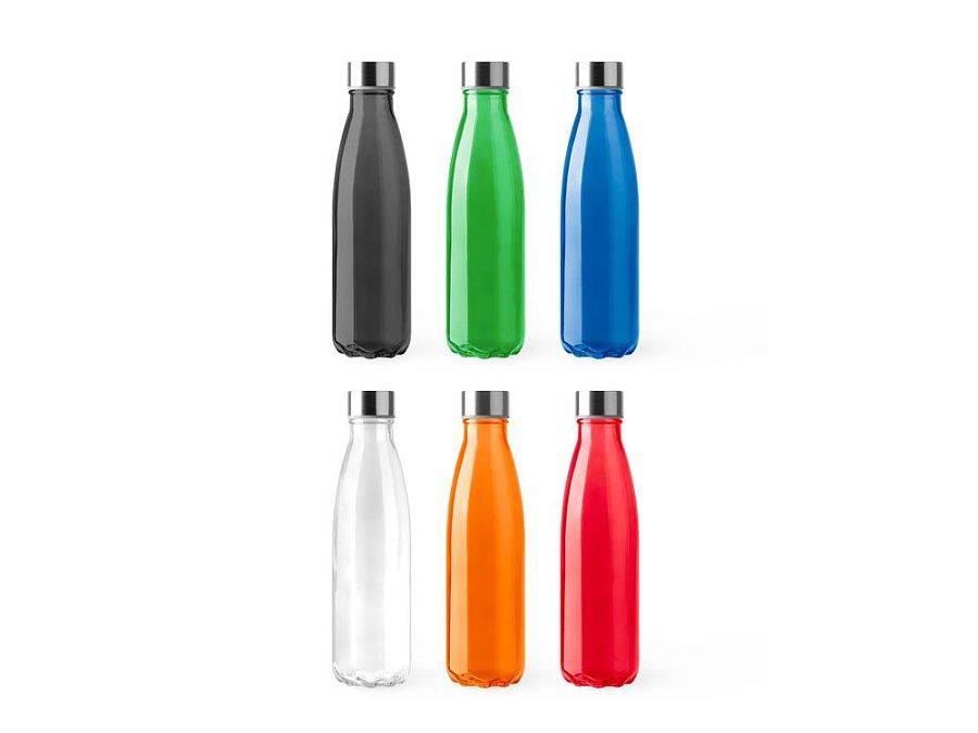 Стеклянная бутылка с полупрозрачным цветным корпусом. Крышка из нержавеющей стали. Объем 650 мл.