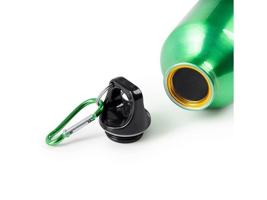 Бутылка из переработанного алюминия с карабином. Емкость 400 мл. Карабин для более удобной переноски бутылки, не рекомендуется для лазания.
