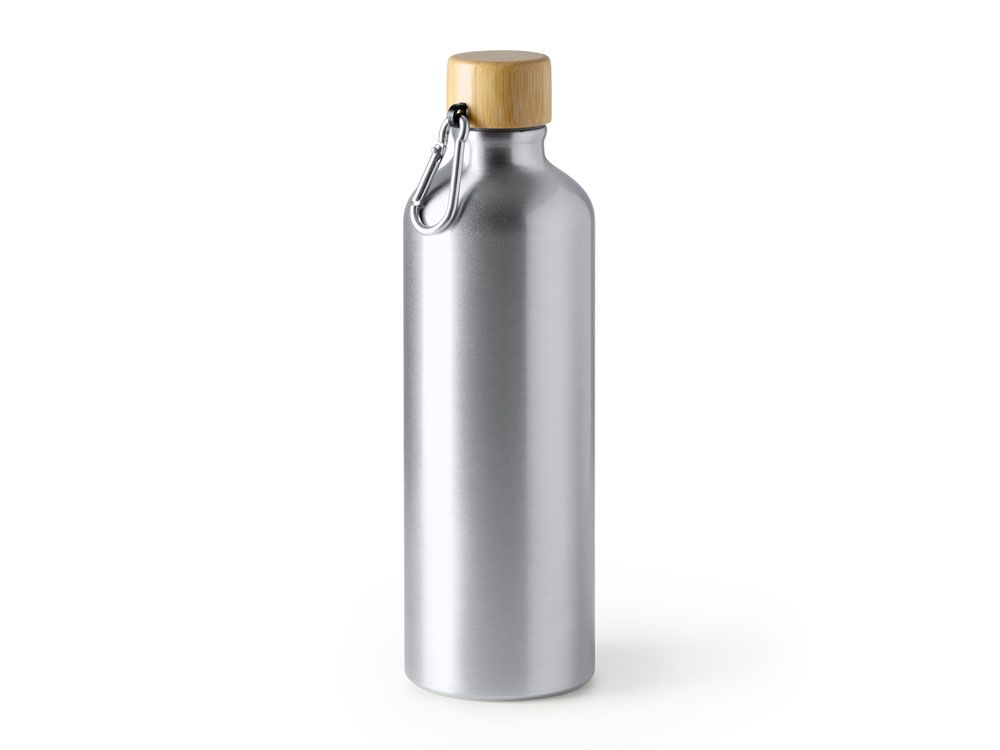 Алюминиевая бутылка с карабином для удобной транспортировки и бамбуковой пробкой. Объем 800 мл.