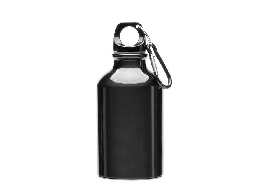 Алюминиевая бутылка с карабином. Черная крышка и карабин в тон бутылки. Емкость 330 мл. Поставляется в дизайнерской упаковке.
